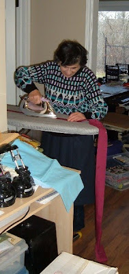 Dora, our master binding ironer!! (hmmm, spell checker doesn't like that word :-). Dora ironed bindings all day long :-).